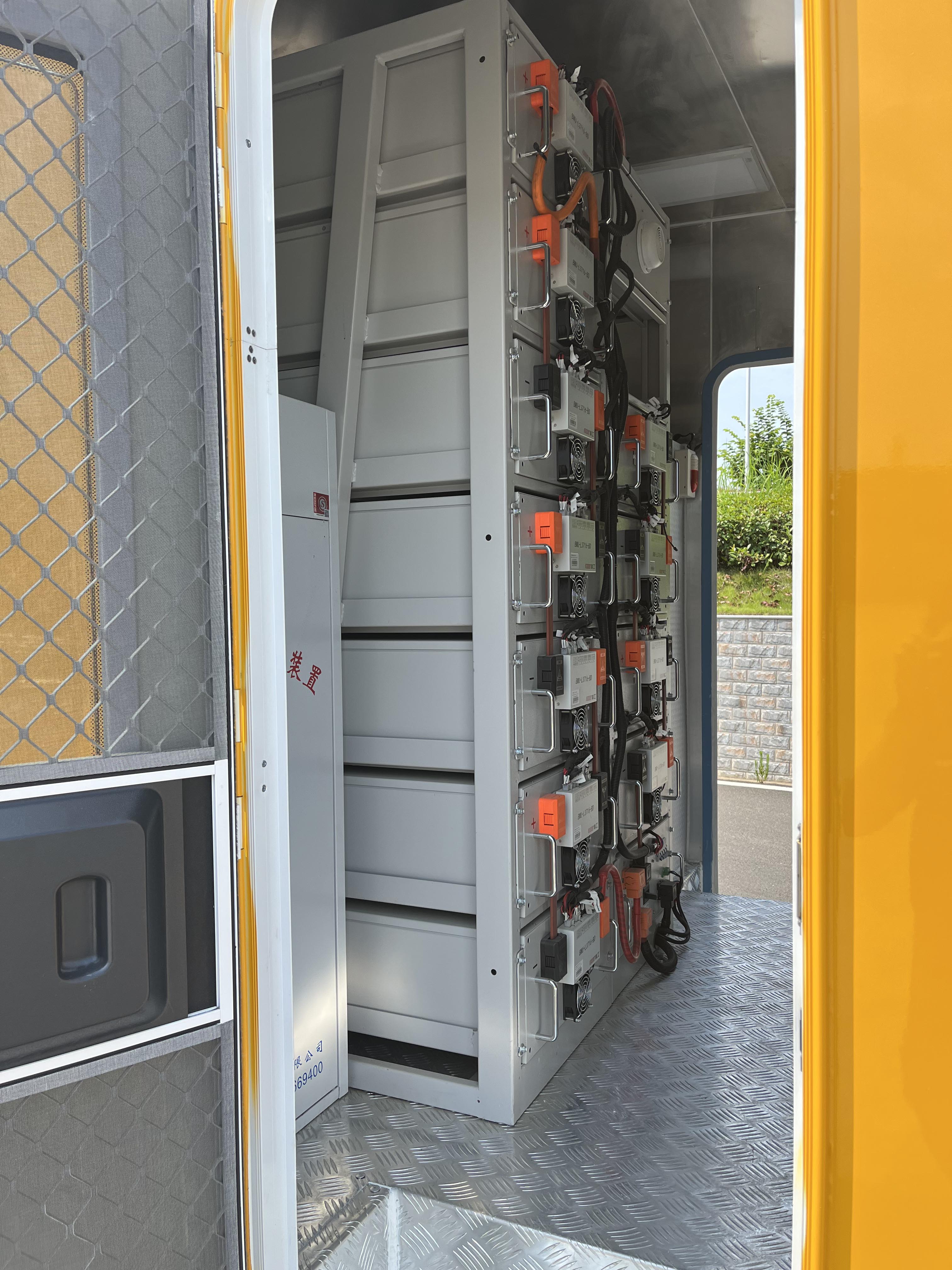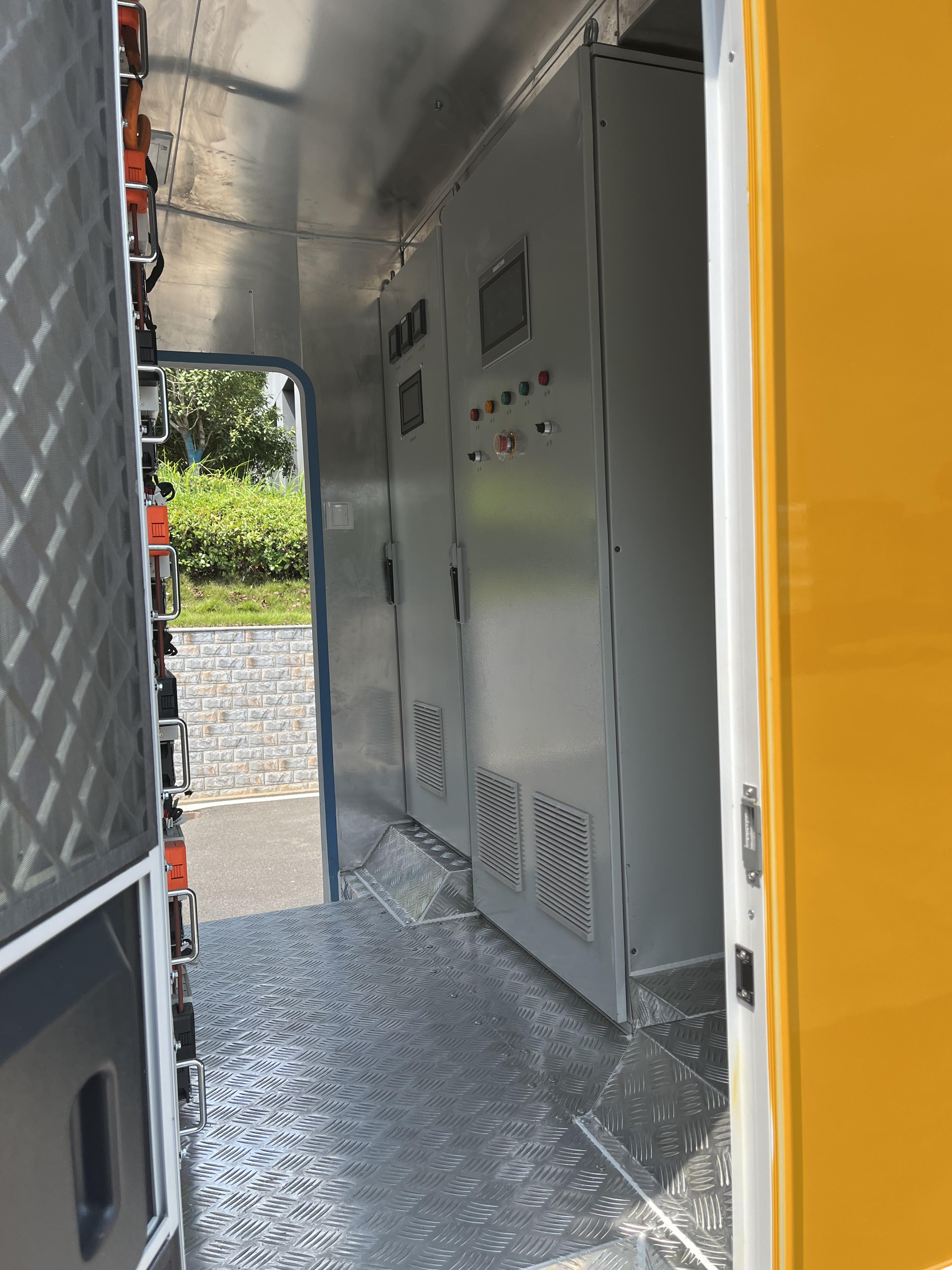8,通過充電樁快速補(bǔ)電:儲(chǔ)能車外艙設(shè)計(jì)充電樁充電插座,可通過直流快充樁對(duì)儲(chǔ)能車電池快速補(bǔ)電。