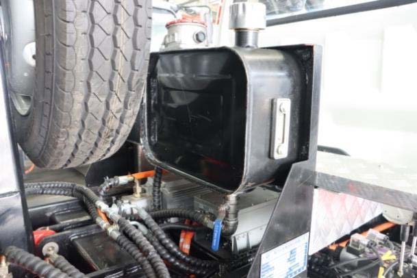 一、底盤配置: 采用東風(fēng)EQ1320GTZEVJ車身,配置玉柴TZ388XSSFE01發(fā)動機(jī)360馬力,國六排放標(biāo)準(zhǔn),軸距1850+3550+1350(mm),整備質(zhì)量14.15噸,額定載質(zhì)量17.72噸,五擋變速箱,帶動力轉(zhuǎn)向,帶原廠空調(diào),隨底盤選裝電池護(hù)罩,輪輞,踏板;側(cè)面防護(hù)裝置材料為鋁合金,與底盤縱梁采用 焊接連接;后下部防護(hù)裝置材料為 Q235,與車架螺栓連接,截面尺寸:120×60mm,離地高 度為 445mm;動力蓄電池種類:磷酸鐵鋰蓄電池,生產(chǎn)企業(yè):寧德時代新能源科技股份有 限公司;驅(qū)動電機(jī)類型:永磁同步電機(jī),驅(qū)動電機(jī)功率:360kW,生產(chǎn)企業(yè):陜西法士特齒輪 有限責(zé)任公司;ABS 型號:CM4XL-4S/4M;ABS 生產(chǎn)企業(yè):廣州瑞立科密汽車電子股份有限 公司;該車安裝具有衛(wèi)星定位功能的行駛記錄儀;專用功能及裝置該車上黃牌,城區(qū)道路請注意限行標(biāo)識。