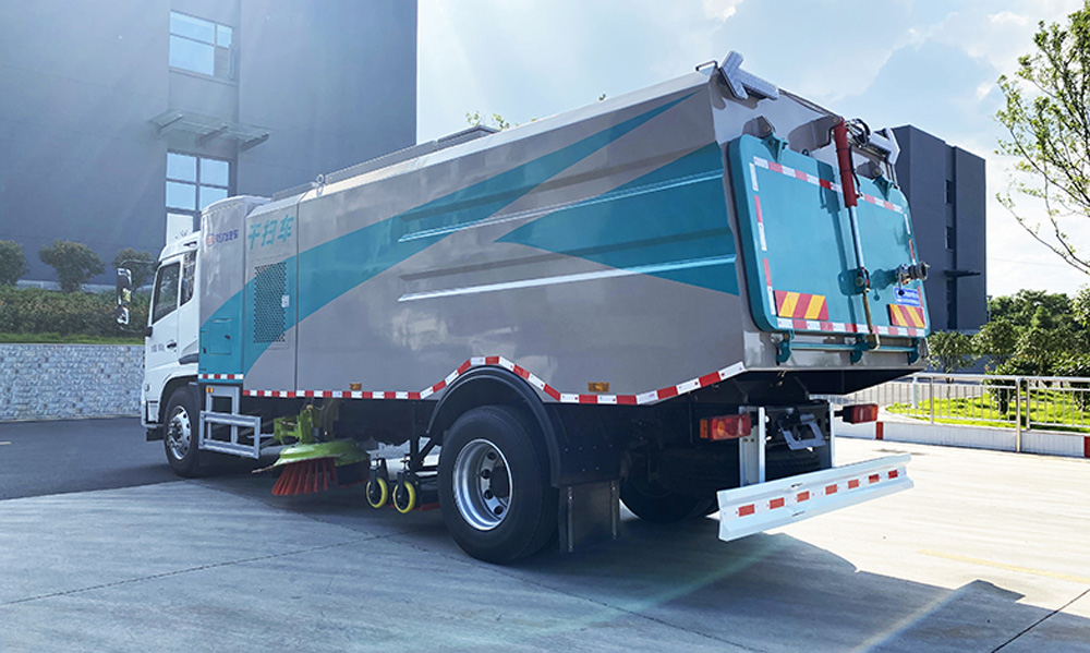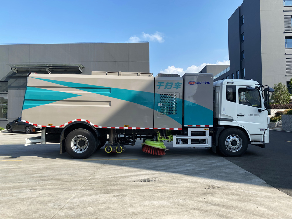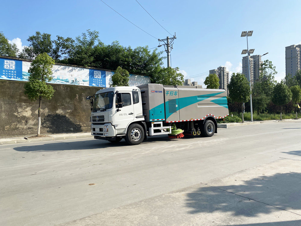 底盤發(fā)動(dòng)機(jī)驅(qū)動(dòng)洗掃車向前行走,掃至吸嘴前方的垃圾不斷進(jìn)入到吸嘴中,并源源不斷地被吸到垃圾箱中,實(shí)現(xiàn)路面清掃。