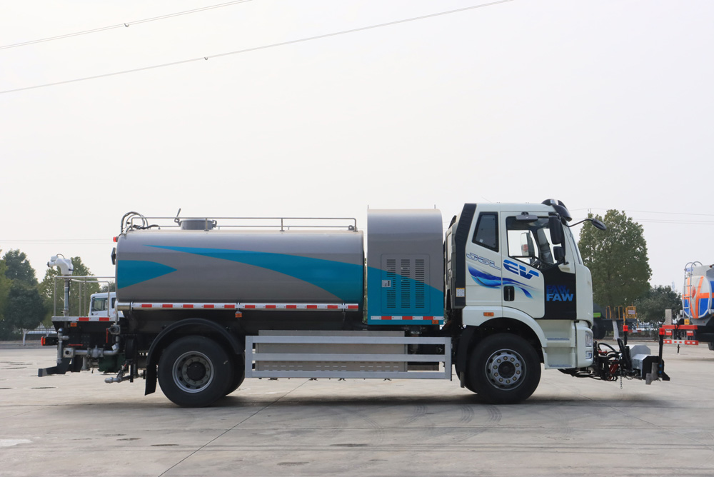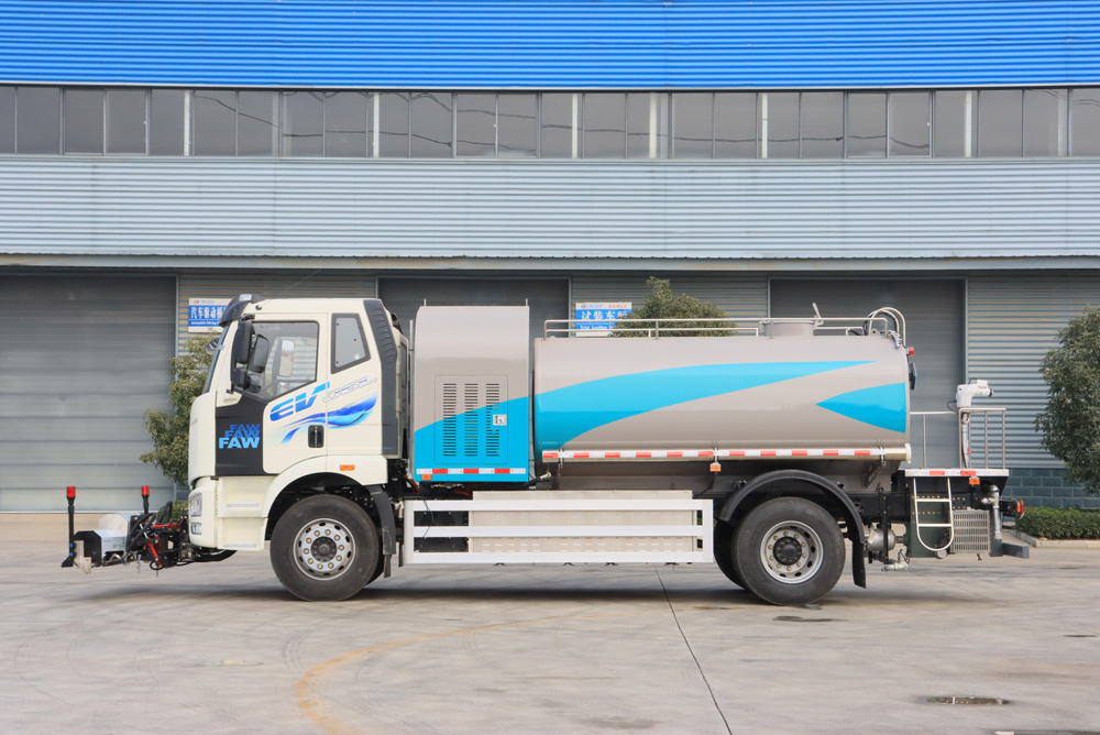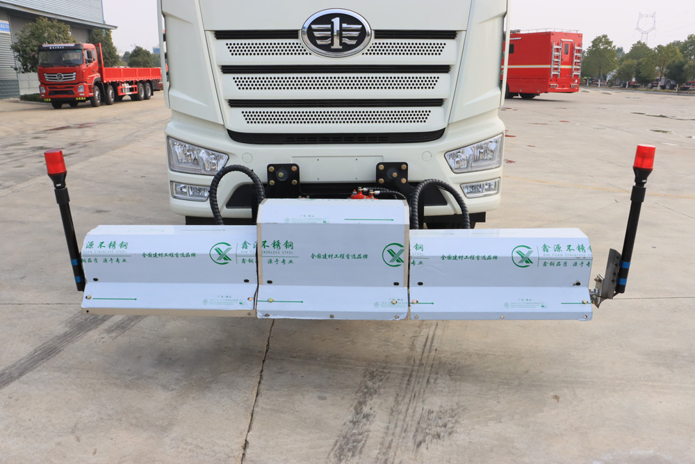 四、其他說明: 解放純電動高壓清洗車是新能源高壓清洗專用車輛,該車型選用解放純電動底盤改裝,具有噪聲低、能耗低、易操作、無排放污染等特點(diǎn)。整車作業(yè)效率高,工況時間長,造型時尚,技術(shù)達(dá)到國內(nèi)領(lǐng)先水平。高低壓水泵均采用電機(jī)驅(qū)動,沖洗壓力無極可調(diào),實(shí)現(xiàn)提升效率、節(jié)能降耗、綠色環(huán)保的要求.● 配備前置高壓清洗,通過左右角度及位置調(diào)節(jié)實(shí)現(xiàn)高效清洗。