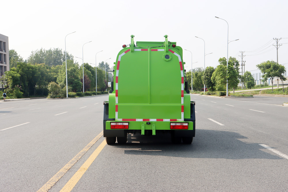 該車特點 餐廚垃圾車也叫泔水車,主要用于廚余垃圾的收集和運轉(zhuǎn),具有裝、卸垃圾自動化程度高、工作 可靠、密封性好、裝載容積大、操作簡便、運輸過程密閉,無污水泄露和異味的散發(fā),環(huán)保性好等 特點??膳溲b載不同規(guī)格的標(biāo)準(zhǔn)垃圾桶,具有廣泛的適用性。餐廚垃圾車是高效、清潔的廚余垃圾 收、運專用車
