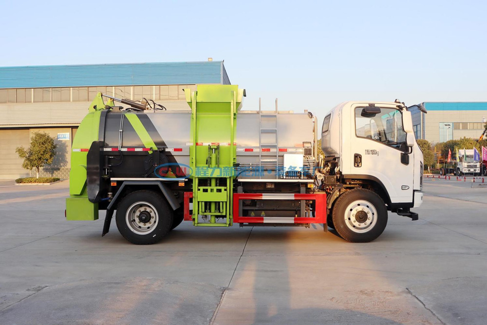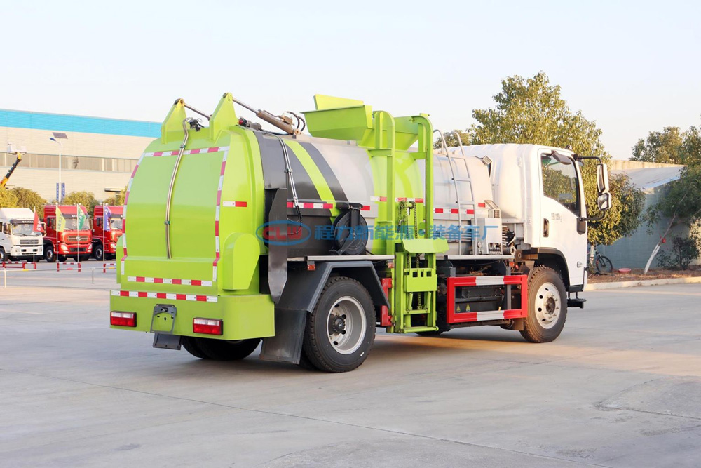 四、其他說明: 由于餐廚垃圾車上裝結構復雜,自質量較大,降低餐廚垃圾車自質量,提高其載荷 利用率,將降低車輛運營成本。因此采用高強度材料,以降低上裝自質量;擋泥板、裝飾件、蓋 板等輔助件采用密度較小的注塑件,采用集成化程度較高的零部件,以減少空間占用和自質量, 同時有利于改善液壓系統的工作性能。專人試車;模擬各種復雜工作環境,所有壓縮發車前實物測試。