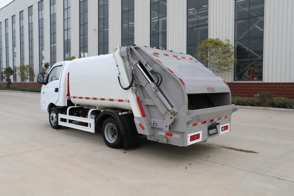 四、其他說明: 涂裝采用噴粉加烤漆工藝。箱體容積3 立方米,為高強度鋼制作的弧形無泄漏船型箱體,頂部有刮滑板,防止垃圾泄漏和異味擴(kuò)散。液壓系統(tǒng)采用國產(chǎn)油缸、睿宸油泵、揚州中梅多路閥。后帶翻桶架,可掛 2 只國標(biāo) 240L 方塑料桶,提升機帶無線遙控。填裝器舉升油缸帶平衡閥,帶氣動密封蓋,填充器底部有污水箱,還配備作業(yè)后支腿和電控限位感應(yīng)系統(tǒng)。