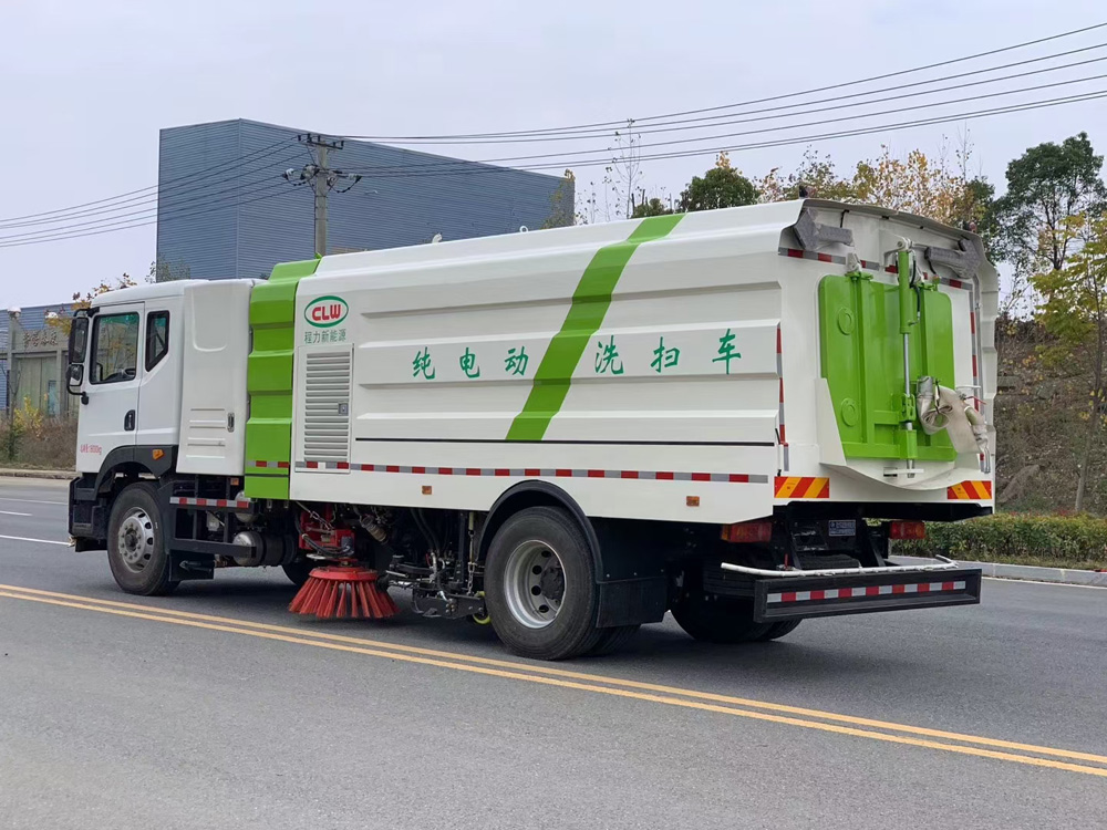 該車特點 方形箱體,大大增加箱體容積,增加整車美觀程度。 底盤電機直接取力,專車專配,完美匹配,無取力器,比柴油車更節省步驟、故障率更低。 洗掃車采用東風純電動二類汽車底盤改裝,加裝風機、高壓水泵、清水箱、垃圾箱、左右立掃、帶噴水桿的寬吸嘴、掃盤降塵系統、液壓系統、專用裝置電控系統和副車架等改裝而成。