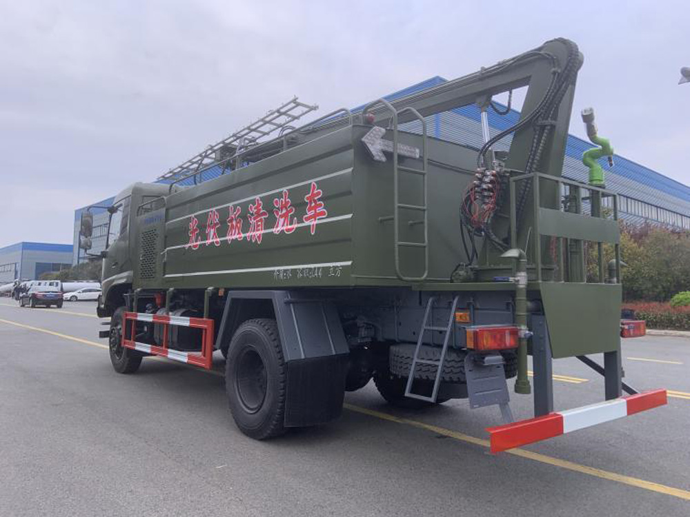四、其他說明: 太陽能面板清洗車采用東風越野四驅底盤,它適用于各種路面灑水、噴霧、 降溫、除塵、沖洗,主要用于光伏面板、 隧道墻壁清洗,同時可用于路面養 護、園林綠化及應急消防、 運輸飲水等。