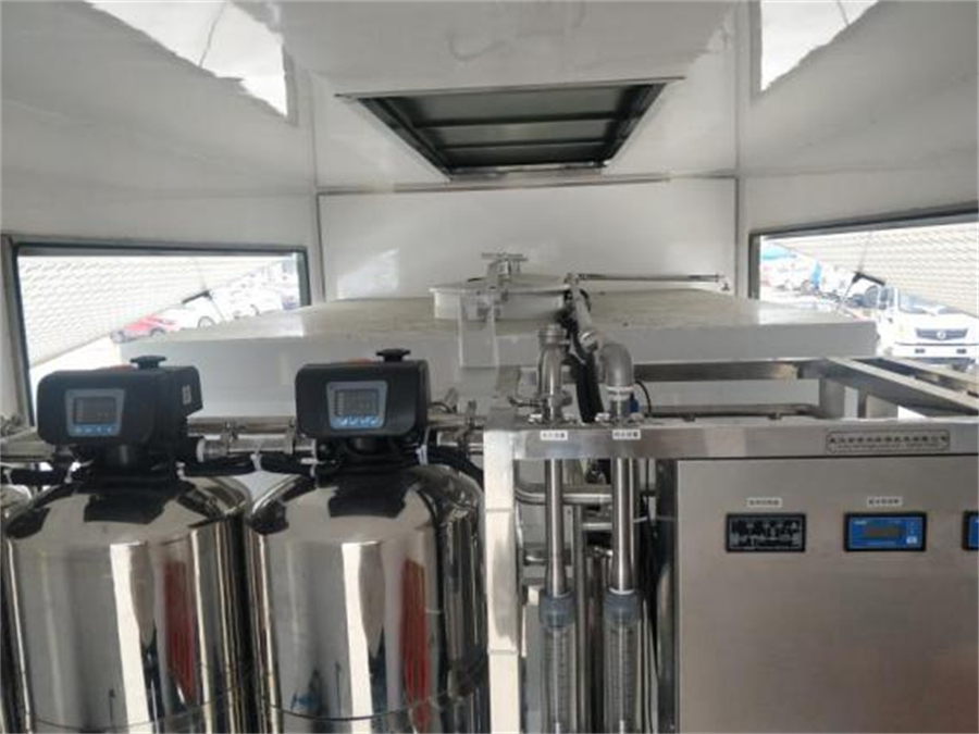 凈水廂體分為前倉熱水鍋爐倉,與后倉凈水倉,凈水倉由6立方不銹鋼水箱,與凈水機組,發(fā)電機組,水帶架,管路電氣系統(tǒng)組成。
