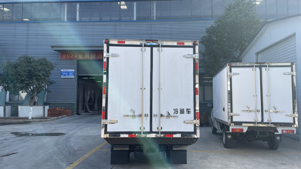 二、廂體配置:采用我司《晶龍工藝》專利技術——1200噸液壓加熱固化設備一體成型生產線制造,廂體保溫技術達到國家A級標準,廂體尺寸:3120×1560×1530,1560(mm)。工藝特點:1、廂板采用全密封樹脂膠粘連聚氨酯發泡板高壓加熱固化而成,厚度8cm;2、廂板內外面料為2.5mm厚新款納米玻璃鋼(不吸光,隔熱性好,硬度強,抗氧化);3、粘連輔料為玻璃纖維絲布;4、無空隙填充聚氨酯發泡保溫材料;5、全密封樹脂膠粘連;6、預埋實木加固廂體;7、防銹處理槽鋼框架支撐;8、鋁合金包邊、不銹鋼包角;9、內部加裝LED照明燈及廂體示寬燈;10、后門框、鉸鏈、鎖件均為不銹鋼材質;11、后門加裝防撞膠塊;12、采用三元乙丙橡膠密封條。