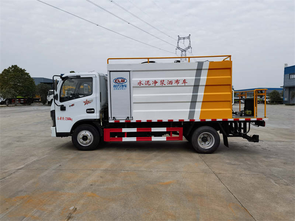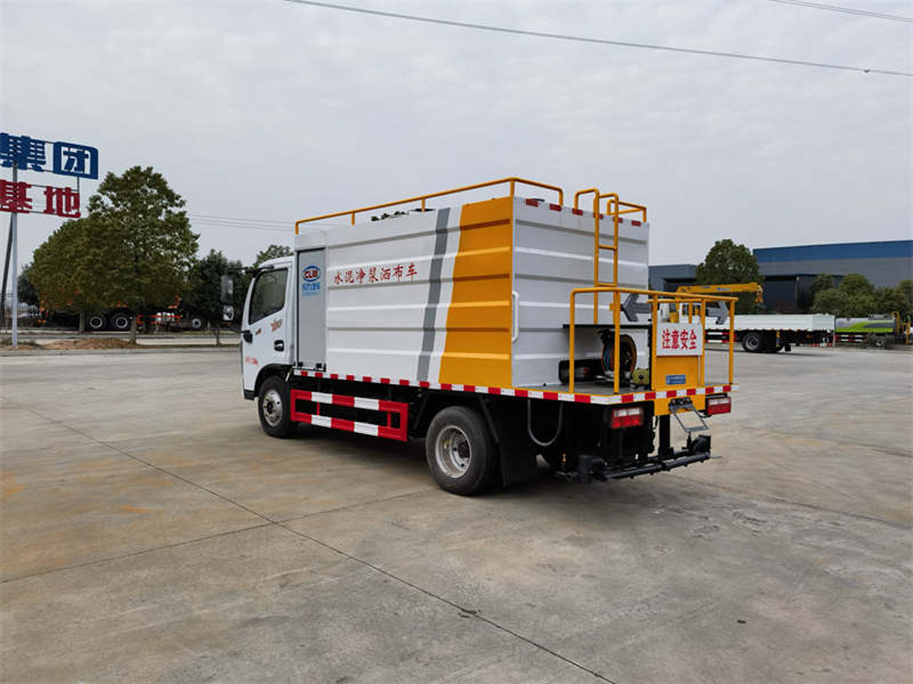四、其他說明: 水泥罐、清水罐采用 Q235 優質碳鋼制作,高壓水泵,水泥泵(專用),攪拌系統,液壓系統,水罐到攪拌罐供 水系統(渣漿泵),15 米高壓清洗管道(帶卷盤、手持清洗槍),減速分動箱(車輛在行駛工作過程中將車速減慢 從而達到更加理想的灑布效果),尾部 14 個水泥漿專用噴頭,最大灑布寬度 4 米。標配水罐向攪拌罐供水系統,標 配提升裝置(用于袋裝水泥向罐體頂部運輸)。