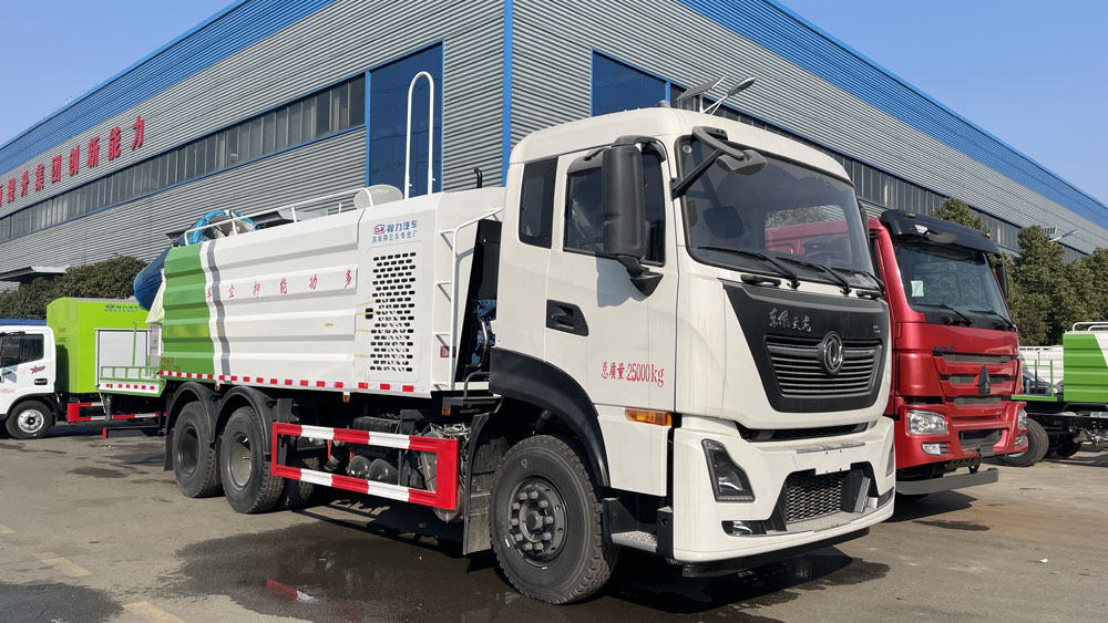 七、其他說明:承載能力強:采用東風天龍后雙橋加強型底盤,配備 5 噸前橋、10 噸級雙后橋,搭配 11.00R20 輪胎,能夠穩定承載大容量水罐、霧炮設備及其他相關裝置的重量,確保車輛在各種工況下行駛的穩定性和安全性. 舒適性與安全性高:一排半帶臥鋪駕駛室,配備航空減震座椅、通道式儀表盤、液壓方向帶助力、原廠冷暖空
