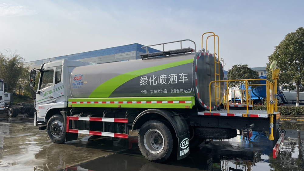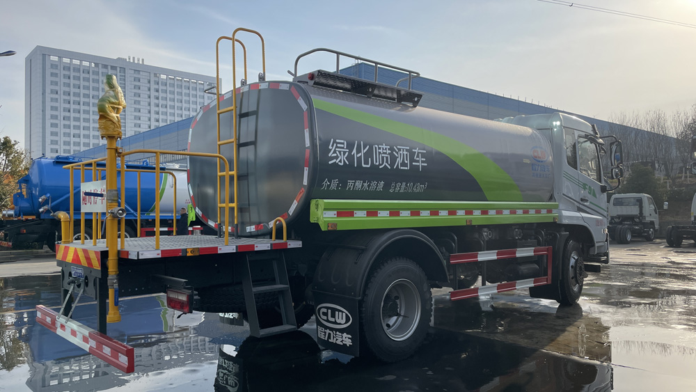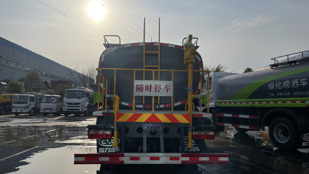 四、其他說明: 罐體由國標5mm厚優(yōu)質(zhì)碳鋼板一次性卷壓成型,二保焊行走小車自動焊接,焊縫均勻、美觀,避免了人工焊接的漏焊和虛焊,罐體內(nèi)部加固處理,并設(shè)置防浪板,罐體內(nèi)外做防銹處理,標配前沖、后灑、側(cè)噴、后置式工作平臺,平臺帶踏梯,四周有安全護欄,平臺上設(shè)有高壓水炮,可360°旋轉(zhuǎn),可調(diào)成:直沖狀、大雨、中雨、小雨、毛毛雨。