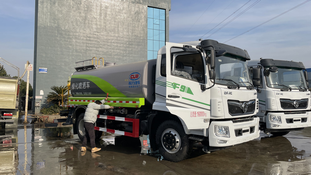 三、選裝配置: 選配駕駛室內(nèi)電控氣動操作;大鴨嘴前沖噴頭壹對;萬向前沖球閥;路面沖洗水管卷盤;本田高壓水泵,水槍可沖洗人行道、移動洗車等; 藥盤;長警燈,LED箭頭燈;罐側(cè)帶閘門,罐后加裝噴霧降塵裝置;灑水車泵標配程力泵選配杭州威龍泵;可對主管道加粗,可選316大口徑球閥;罐體內(nèi)防腐、保溫、襯塑處理,灑水車作運水車用可加裝自流口。運熱水罐體可做保溫,運生活用水可做食品級304不銹鋼罐體。