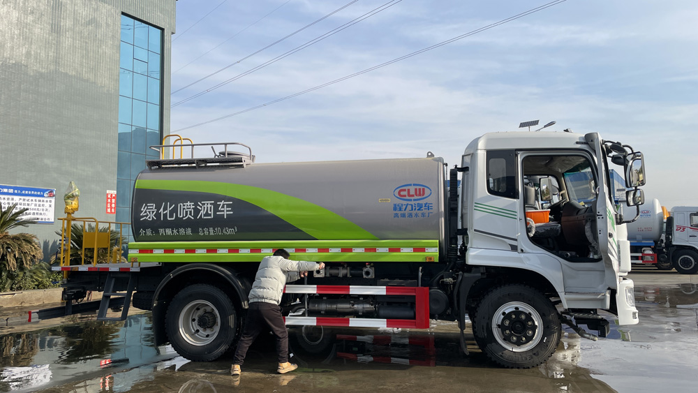 二、上裝配置: 國內(nèi)三家灑水車生產(chǎn)流水線,其中一條在我公司。罐體由國標5mm厚優(yōu)質(zhì)碳鋼板一次性卷壓成型,二保焊行走小車自動焊接,焊縫均勻、美觀,避免了人工焊接的漏焊和虛焊,罐體內(nèi)部加固處理,并設(shè)置防浪板,罐體內(nèi)外做防銹處理,標配前沖、后灑、側(cè)噴、后置式工作平臺,平臺帶踏梯,四周有安全護欄,平臺上設(shè)有高壓水炮,可360°旋轉(zhuǎn),可調(diào)成:直沖狀、大雨、中雨、小雨、毛毛雨。3950軸距及以上車型標配高位花灑功能。
